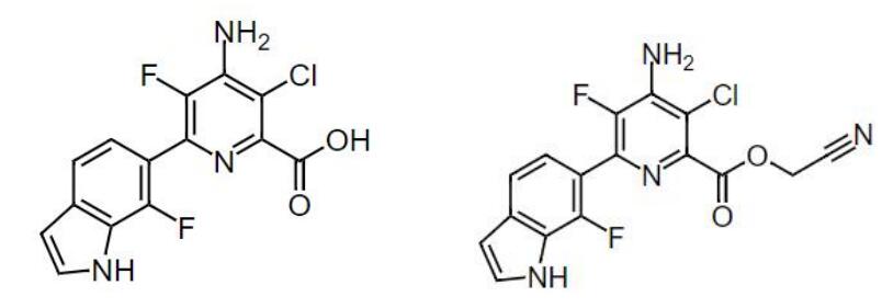 吲哚吡啶酸(indolauxipyr)為科迪華開(kāi)發(fā)的一種吡啶甲酸類除草劑,開(kāi)發(fā)代號(hào)為X-263和X12312263??频先A計(jì)劃上市indolauxipyr的氰基甲酯產(chǎn)品吲哚吡啶酯(indolauxipyr-cyanomethyl),開(kāi)發(fā)代號(hào)為XDE-521和XR-521。