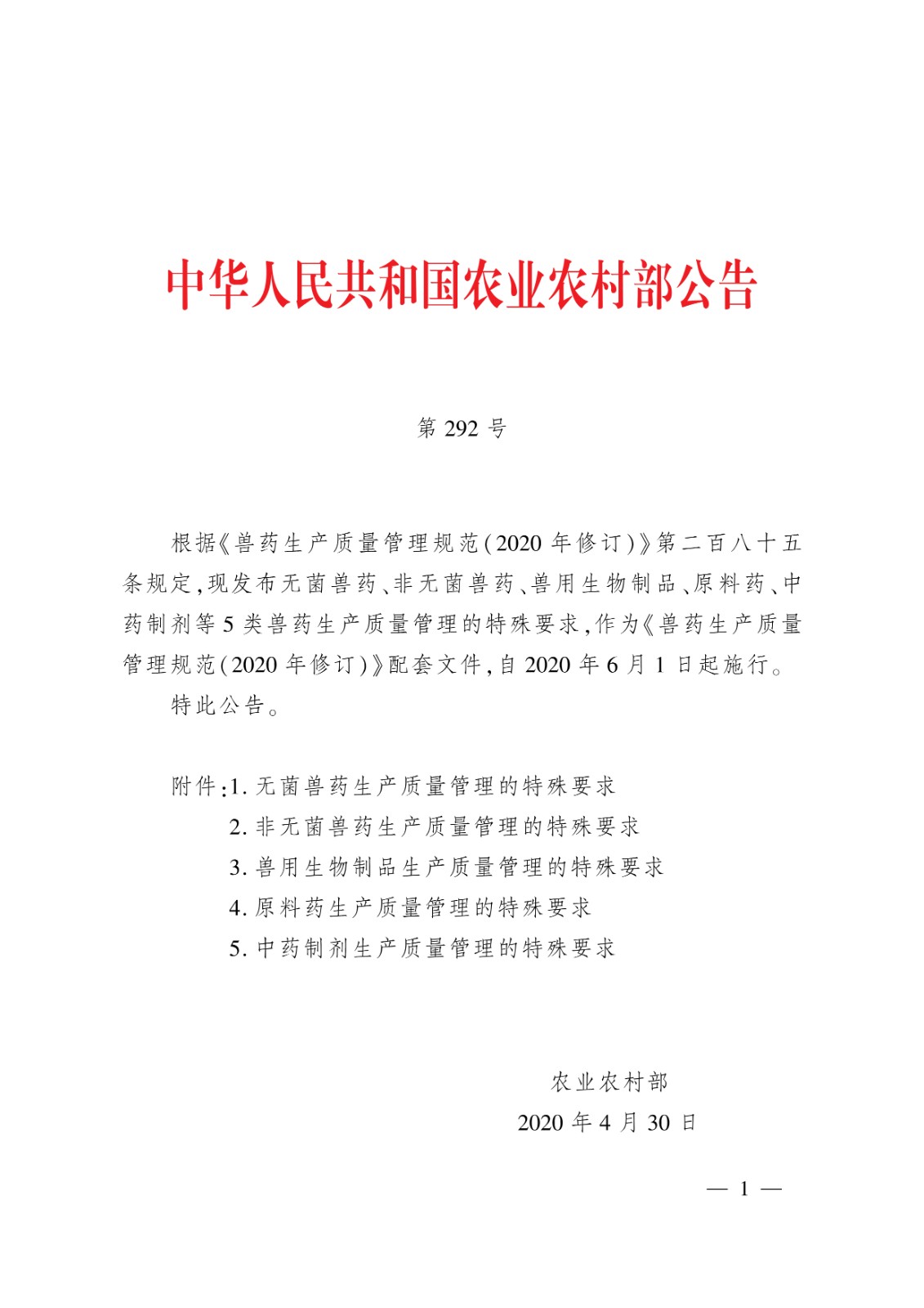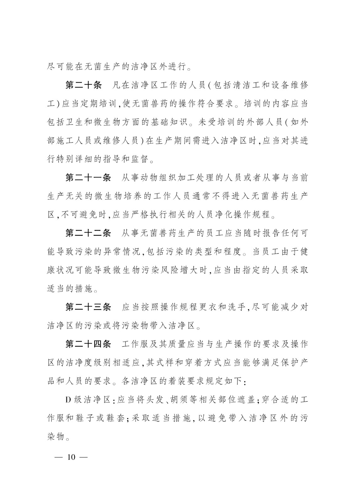 無(wú)菌獸藥生產(chǎn)質(zhì)量管理的特殊要求;2.非無(wú)菌獸藥生產(chǎn)質(zhì)量管理的特殊要求;3.獸用生物制品生產(chǎn)質(zhì)量管理的特殊要求;4.原料藥生產(chǎn)質(zhì)量管理的特殊要求;5.中藥制劑生產(chǎn)質(zhì)量管理的特殊要求